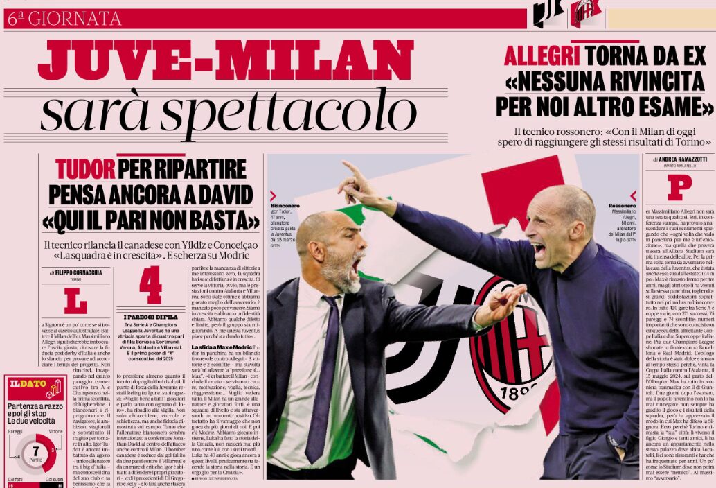 Povratak Massimiliana Allegrija u Torino kao protivničkog trenera dodatno će povećati tenzije. On je naglasio da ova utakmica ne predstavlja priliku za osvetu, već će se njegov fokus isključivo usmeriti na ostvarenje pobede i mogućnost povratka Juventusa u Ligu šampiona. Oba tima će težiti da zadrže svoj korak i dokažu se na visokom nivou, čime će dodatno pojačati uzbuđenje među navijačima.