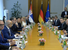 Danas je u Palati Srbija započeo Samit o kritičnim sirovinama, na kojem su prisustvovali predsednik Srbije Aleksandar Vučić, kancelar Savezne Republike Nemačke Olaf Šolc i potpredsednik Evropske komisije i evropski komesar za međuinstitucionalne odnose i strateško predviđanje Maroš Šefčovič. Uoči trilateralnog sastanka, ovi zvaničnici su prošetali ispred palate.